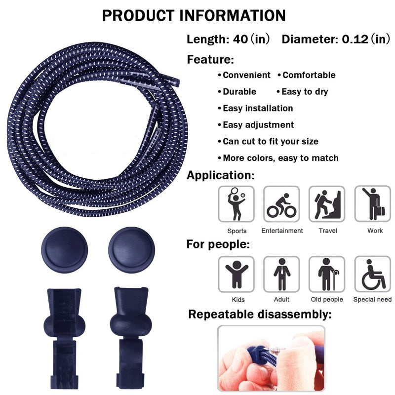 Découvrez nos nouveaux Lacets automatiques facile à nouer, avec ce type de lacet, elles se retirent et s’enfilent aisément sans que vous ayez le besoin de les lacer à chaque fois. Les lacets possèdent une boucle de serrage qu’il suffit de positionner et une fois que c’est fait, vous n’aurez plus besoin d’y toucher. Même sans nœud, les chaussures restent confortables et souples dans les pieds.