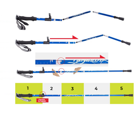 - Bâton de 30cm plié : longueur dépliée de 95 à 110cm