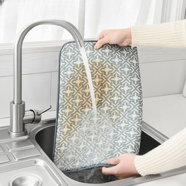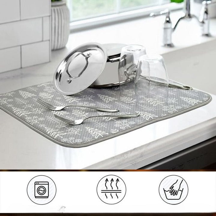 Ce grand tapis d'égouttage permettra de sécher facilement la vaisselle au bord de l'évier de la cuisine. Grâce à son système de séchage rapide, ce tapis vous permet de garder la surface de votre meuble sèche et propre.