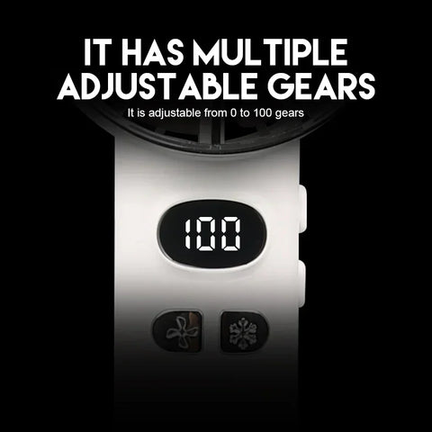 Equipé d'une batterie **3000mAh**, ce ventilateur répond à toutes vos exigences. Grâce à son contrôle de vitesse à **20 niveaux**, ajustez la ventilation selon vos besoins. Avec son bouton pratique, passez de la fonction normaux à l'option refroidissement par glace d'un simple clic.